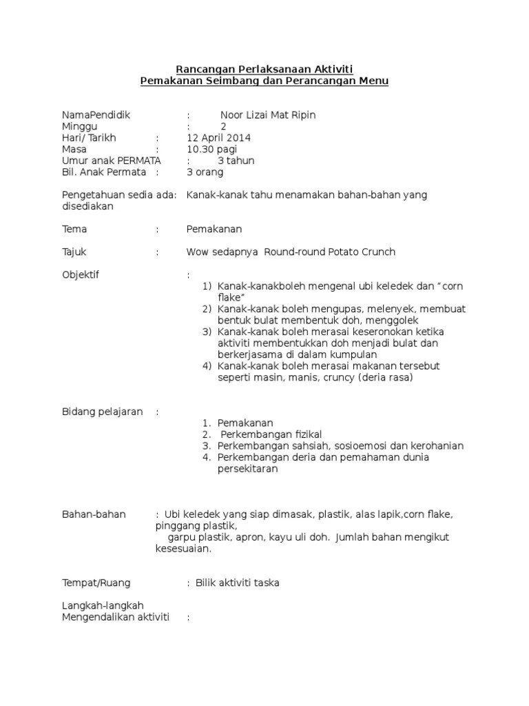 Aktiviti taska sepanjang bulan november 2018 haluan insan . Rancangan perlaksanaan aktiviti (rpa) bidang: Tajuk adab makan bidang pembelajaran fokus aktiviti perkembangan sahsiah,sosioemosi dan kerohanian pengetahuan sedia ada :